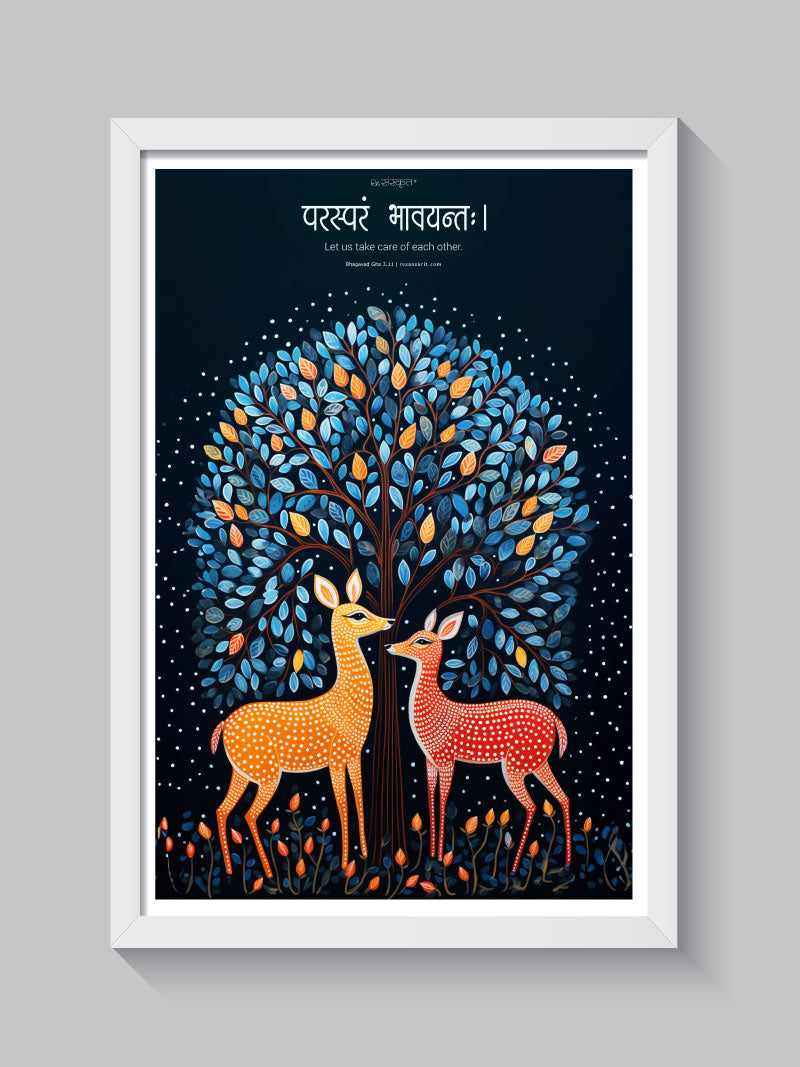 Gond Art Inspired - Bhagavad Gita 3.11 Wall Frame
