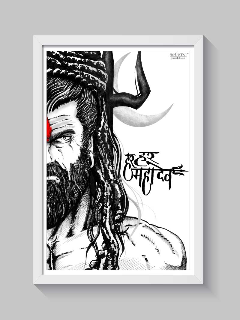 Har Har Mahadev means every human being is in itself, Mahadev Shiva. In Sanskrit, Har means is destroy. Har Har Mahadev also means eliminating all defects to achieve the ultimate consciousness. This sketch artwork is a tribute to the followers of Lord Shiva.