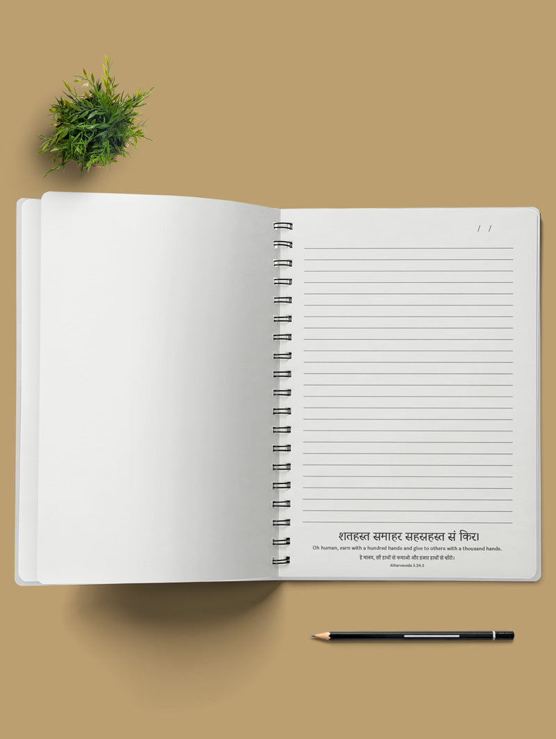 Yes, indeed! Sanskrit is a treasure trove of inspiring wisdom. We've carefully curated a collection of Shlokas for you, so each right-hand page features a new quote with its translation. Get ready for a delightful surprise with every turn of the page!