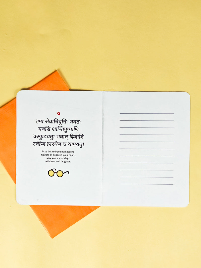 | Inside | Left side features a Sanskrit quote with English translation Right side has ruled lines for your personal message |