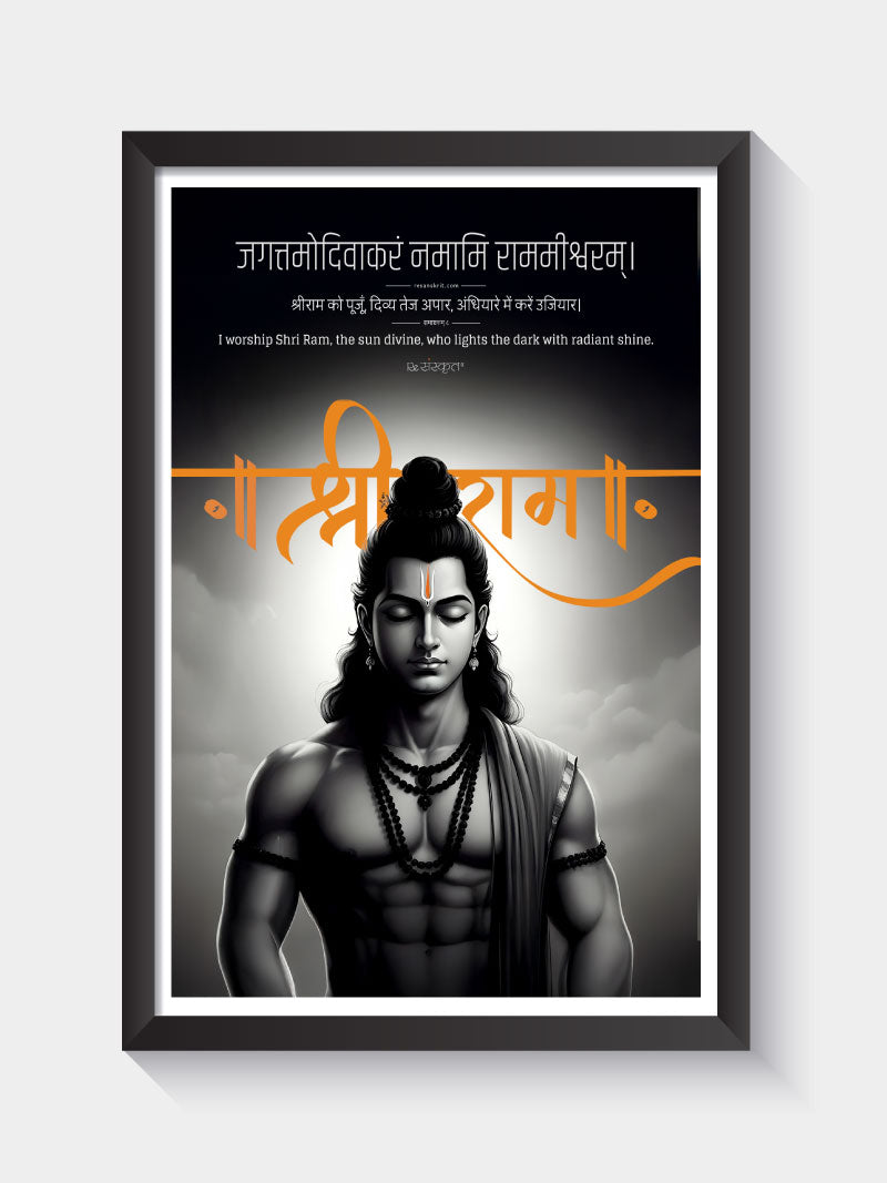 Shree Ram the Light Divine – Sanskrit Wall Art with Spiritual Illustration (Framed)