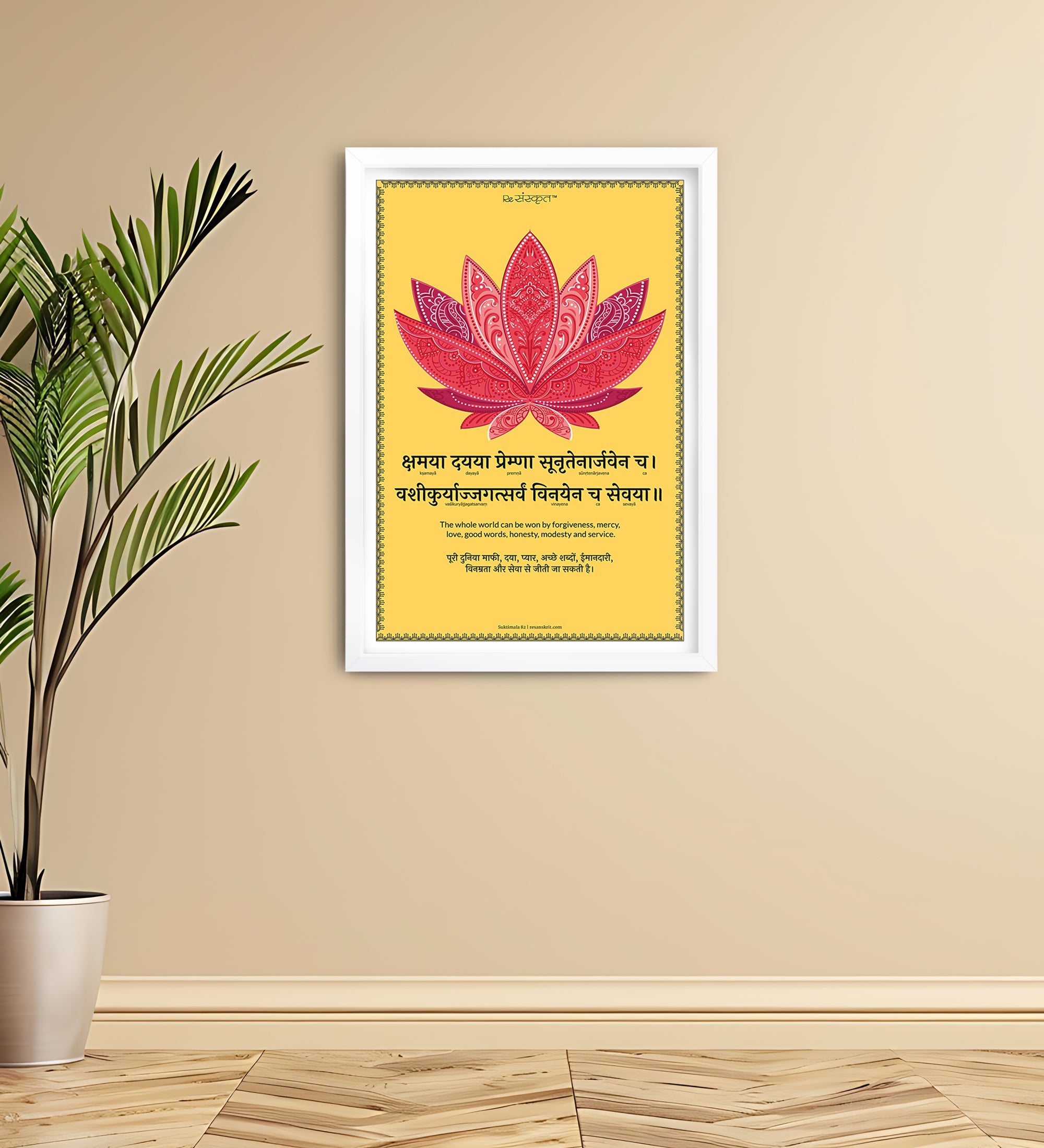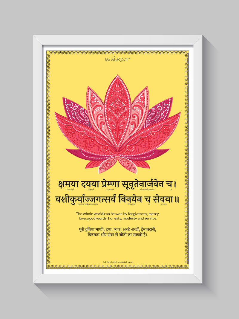 A short yet simple guide to achieving everything in life. You just need to know which one to use when. This is a shloka from Suktimala along with the illustration of a lotus that complements the meaning is a perfect gift of choice for someone close.